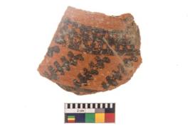 | Description / विवरण | Specimen of black on red ware with black decorative Lattice and leaf like design geometric and nature painting. |