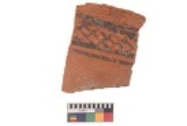 | Description / विवरण | Specimen of black on red ware with black decorative Latttice pattern geometric painting. |