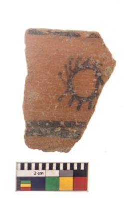 | Description / विवरण | Specimen of black on red ware with black decorative Sun design geometric painting. |