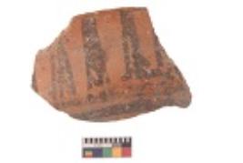 | Description / विवरण | Specimen of black on red ware with black decorative Group of lattice leaves geometric painting. |