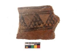 | Description / विवरण | Specimen of black on red ware with black decorative Diamond lattice design geometric painting. |