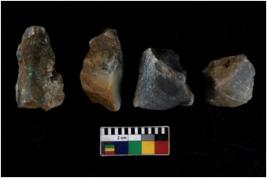 | Description / विवरण | Specimen of a cores with several broad fluted marks and some of them are tapering at one end. |