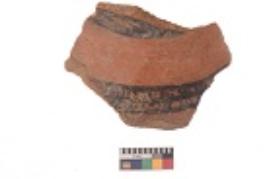 | Description / विवरण | Specimen of black on red ware with black decorative Lattice leaves geometric painting. |