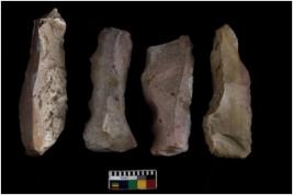 | Description / विवरण | There are n 04 objects; they can be characterised as blade cores, all are thin in nature, blade removing marks are visible. Three are tapering at one end. |