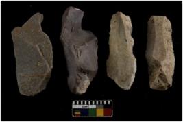 | Description / विवरण | There are n 04 objects; they can be characterised as blade cores, retouched shape is visible, cut marks are seen. Three are tapering at one end. |