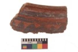 | Description / विवरण | Specimen of black on red ware with black decorative Horizontal bands and arch like design geometric painting. |