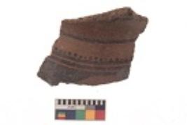 | Description / विवरण | Specimen of black on red ware with black decorative Dots and horizontal lines geometric painting. |