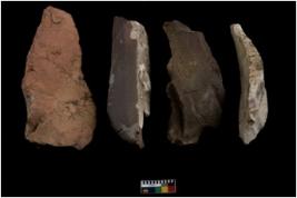 | Description / विवरण | There are n 04 objects; they can be characterised as blade cores, they have sharp edges, cut marks are seen, all are tapering at one end. |