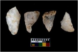 | Description / विवरण | There are n 4 flake cores. All of them are fully fluted flake cores without any trace of crested ridge flakes. Few are tapering at one end and some of them have blunted edges. |