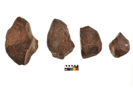 | Description / विवरण | There are n 4 cores; there are multidirectional irregular scar pattern on them. The reverse bulb and platform can be seen. |