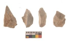 | Description / विवरण | There are n 4 flakes tool; there are large flakes with sides trimmed, Marks of secondary flaking are present on the both the faces.The dorsal is relatively flat. |