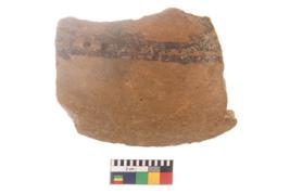 | Description / विवरण | Specimen of black on red ware with black decorative Dots between lines geometric painting. |