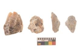 | Description / विवरण | There are n 4 flakes tool; there are large flakes with sides trimmed, Marks of secondary flaking are present on the both the faces.The dorsal is relatively flat. |