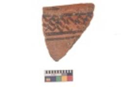 | Description / विवरण | Specimen of black on red ware with black decorative Lattice pattern geometric painting. |