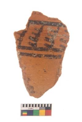 | Description / विवरण | Specimen of black on red ware with black decorative Leaf like design nature painting. |