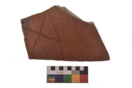 | Description / विवरण | Specimen of X- shaped on exterior of thin coarse Red ware potsherd. |