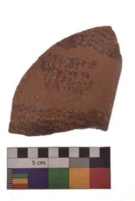 | Description / विवरण | Specimen of Potsherd with black decorative wavy thick line painting . |