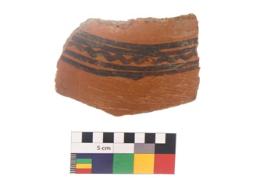 | Description / विवरण | Specimen of black on red ware with black decorative Wavy lines geometric painting. |