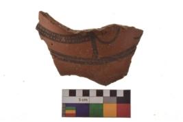 | Description / विवरण | Specimen of Potsherd black on red painted pottery. It is fine fabric in sharp contrast with painted design are executed in black pigment. |