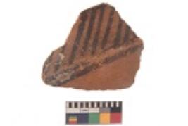 | Description / विवरण | Specimen of black on red ware with black decorative Parallel horizontal lines intersecting vertical lines geometric painting. |
