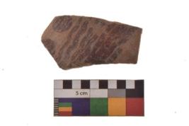 | Description / विवरण | Specimen of Potsherd with black decorative wavy thick line painting . |