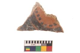 | Description / विवरण | Specimen of black on red ware with black decorative Circle with dots geometric painting. |