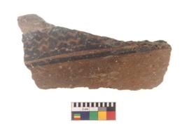| Description / विवरण | Specimen of black on red ware with black decorative Wavy lines geometric painting. |