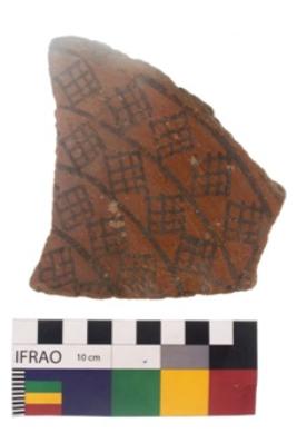 | Description / विवरण | Specimen of black on red ware with black decorative Octahedron like lattice design geometric painting. |