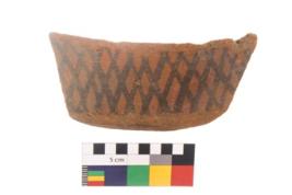 | Description / विवरण | Specimen of black on red ware with black decorative Lattice design geometric painting. |