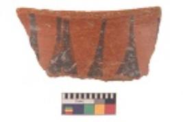 | Description / विवरण | Specimen of black on red ware with black decorative Elongated lattice design geometric painting. |
