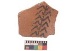 | Description / विवरण | Specimen of black on red ware with black decorative Zigzag lines geometric painting. |