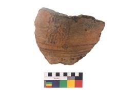 | Description / विवरण | Specimen of black on red ware with black decorative Wavy lines geometric painting. |