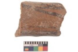 | Description / विवरण | Specimen of black on red ware with black decorative Lattice leaves geometric painting. |
