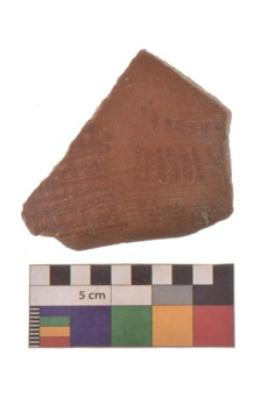 | Description / विवरण | Specimen of a red ware painted pottery. It is fine fabric in sharp contrast with decorative geometric Net Pattern design are executed in red pigment. |