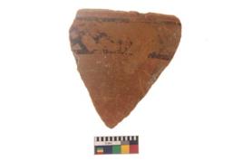 | Description / विवरण | Specimen of black on red ware with black decorative Lattice design geometric painting. |