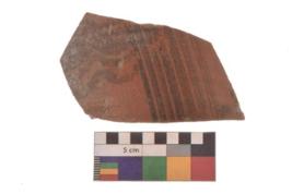 | Description / विवरण | Specimen of Potsherd black on red painted pottery. It is fine fabric in sharp contrast with painted design are executed in black pigment. |