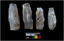 | Description / विवरण | There are n-4 cores. They have retouched side. Tapering can be seen. They are elongated rectangular in shape. Base are round and flat. |