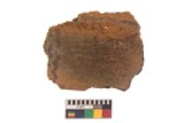 | Description / विवरण | Specimen of black on red ware with black decorative Lattice pattern geometric painting. |