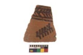| Description / विवरण | Specimen of black on red ware with black decorative Lattice leaf geometric painting. |