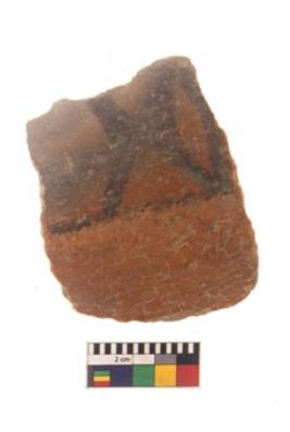 | Description / विवरण | Specimen of black on red ware with black decorative Intersecting curves geometric painting. |