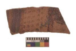 | Description / विवरण | Specimen of a Potsherd with red decorative geometric painting on it. It have lot of dot marks. |