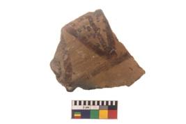 | Description / विवरण | Specimen of black on red ware with black decorative Triangles with dots geometric painting. |