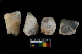 | Description / विवरण | There are n 4 flake cores. All of them are fully fluted flake cores without any trace of crested ridge flakes. Some of them have tapering edges, and few have sharp edges. |
