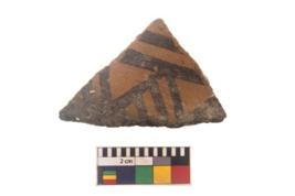 | Description / विवरण | Specimen of black on red ware with black decorative Lattice design geometric painting. |