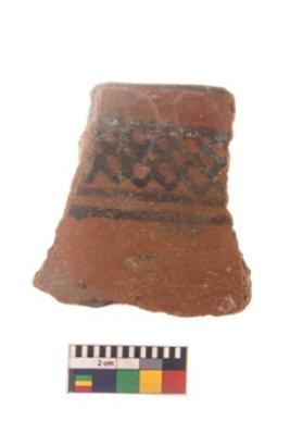 | Description / विवरण | Specimen of black on red ware with black decorative Lattice geometric painting. |