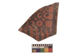 | Description / विवरण | Specimen of Potsherd black on red painted pottery. It is fine fabric in sharp contrast with painted design are executed in black pigment. |
