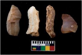 | Description / विवरण | There are n 04 objects; among them three are made up of chert and one is of chalcedony, they can be characterised as blade cores, all of them have sharp edges, all are tapering at one end. |