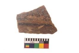 | Description / विवरण | Specimen of black on red ware with black decorative Parallel wavy lines geometric painting. |