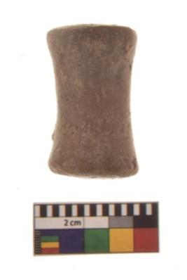 | Description / विवरण | A partially broken Specimen of a Terracotta Pendant. It is made of red ware, fine fabric, well-fired. It is cylindrical biocancve in shape. |