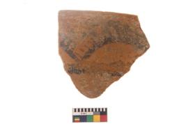 | Description / विवरण | Specimen of black on red ware with black decorative Lattice design geometric painting. |